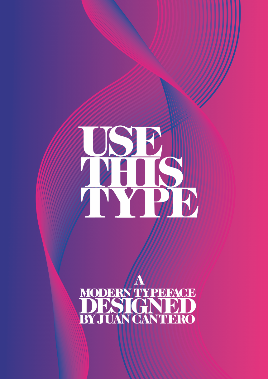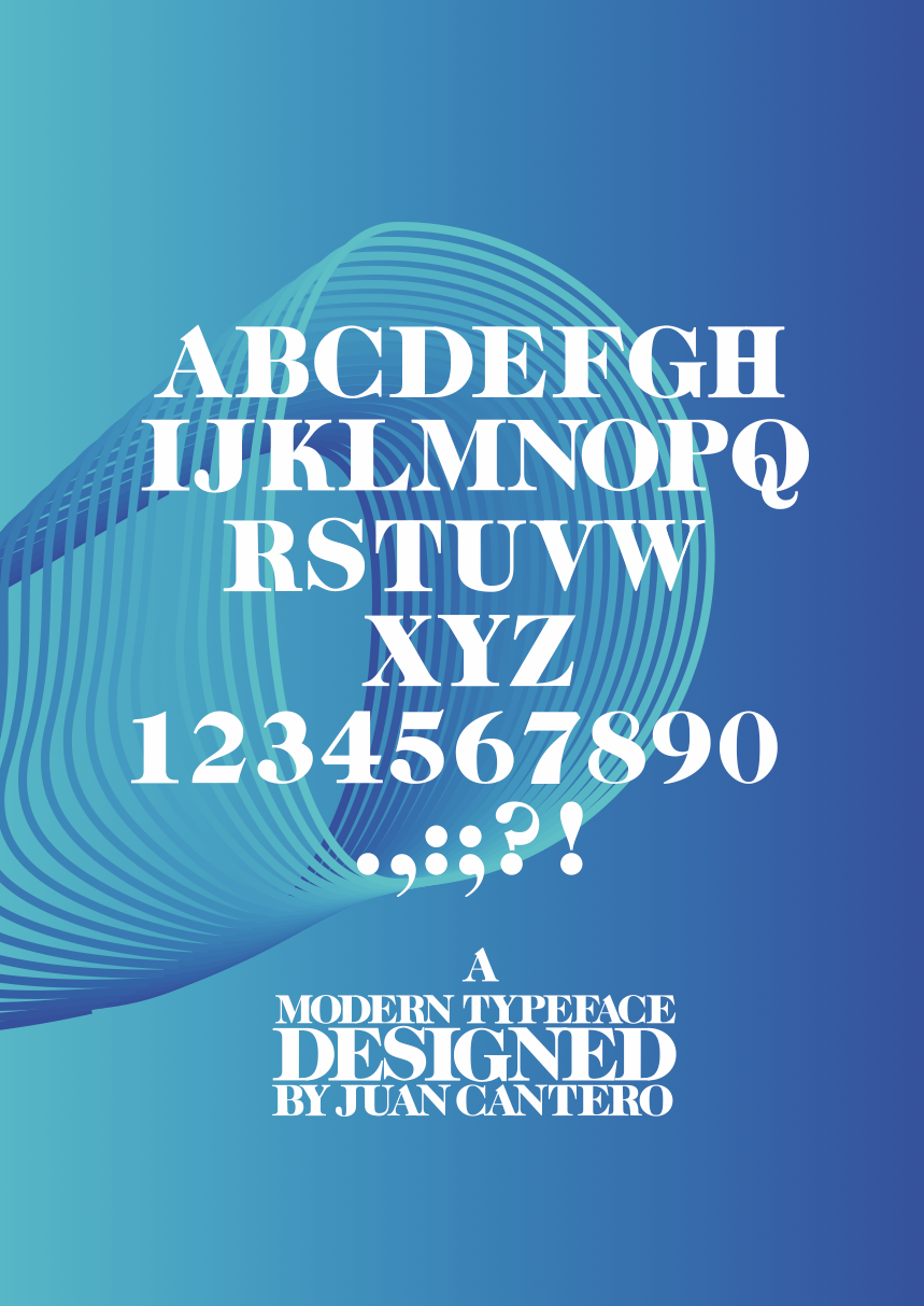 Diseño de una tipografía Bold moderna para uso display con sus respectivos especimenes.